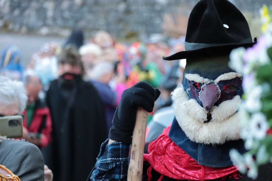 Si svolge il sabato grasso e mette in scena la variegata e rumorosa essenza del paese attraverso le proprie maschere tradizionali, a cominciare dal Vècio, custode del paese e del Carnevale, che, con la sua maschera austera, il nodoso bastone e il campanaccio legato in vita, mantiene l’ordine e guida la sfilata. La sua autorità è però sfidata dal comparire dei Furchetì, maschere beffarde e cornute, vestite di rosso e armate di forche di legno che sbattono ripetutamente a terra, spaventando i presenti e minacciando le altre maschere. Sono presenti poi il Barba e la Mèda (cioè gli zii scapoli), i Sunadùr (i suonatori, che accompagnano la sfilata), il Bergamì (il mandriano), ed il Pastùr (il pastore).